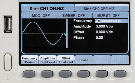 Генераторы представляют собой лабораторные многофункциональные измерительные приборы, принцип действия которых основан на технологии прямого цифрового синтеза, который позволяет получать стабильные, высокоточные сигналы с низким коэффициентом нелинейных искажений практически любой формы. На передней панели генератора находится цветной жидкокристаллический дисплей, на котором отображается форма генерируемого сигнала и его параметры. Под дисплеем находится ряд кнопок управления меню, с помощью которых пользователь может задать параметры различных форм сигналов. В нижней правой части панели расположены выходные разъемы двух каналов и кнопки выбора канала. Рядом с выходными разъемами находится блок кнопок, используемых для выбора и сохранения форм сигналов, включения режимов модуляций и вызова меню настроек прибора. Для ввода цифровых параметров на панели имеется три группы органов управления: кнопки направлений (со стрелками), вращающийся регулятор параметров и цифровая клавиатура. На задней панели генератора имеется разъем для подключения шнура питания, интерфейс USB — для управления через ПК, входные разъемы: опорной частоты 10 МГц, сигнала внешней модуляции и сигнала запуска, выходные разъемы: опорного генератора 10 МГц, сигнала запуска и сигнала синхронизации.